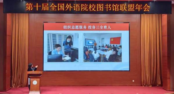 志愿服务部主任侯婷在大会上作主题发言,详细介绍了天外图书馆古籍数字化抢救公益项目的设计思路,阐述了数字赋能在项目管理中的应用,并分享了三全育人劳动教育实践等方面的内容。