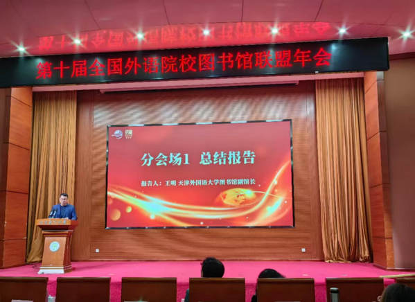 天外图书馆副馆长王明代表第一分会场在大会上作总结报告。他指出,高校图书馆资源建设虽面临诸多挑战,但图书馆人始终积极进取,努力探索创新之路。通过平衡纸电资源经费、加强特色馆藏资源建设等举措,不断提升资源建设水平,为高校教学科研提供有力支撑,促进中华优秀传统文献传播,为文化传承与发展贡献力量。