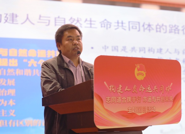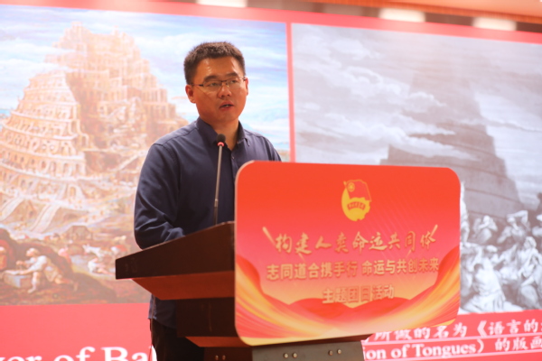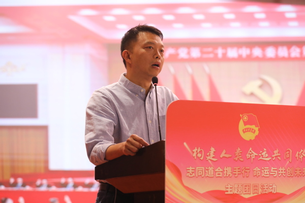 在践行构建人类命运共同体主题发言环节,天津市人民政府外事办公室联络处处长李文家以“做融通中外的使者”为题,以“身边的国际社会”为主线,生动形象地讲解了习近平外交思想在天津的实践,介绍了天津在对外交流中的优势和特色,并以自身在实际工作中的经历和感悟,鼓励同学们要把握好“求中”的根基,深入学习中国历史和传统文化,厚植家国情怀;同时,也要学好专业知识,在“求外”的实践中发挥专业优势,坚持胸怀天下,践行使命担当,争做融通中外的使者。