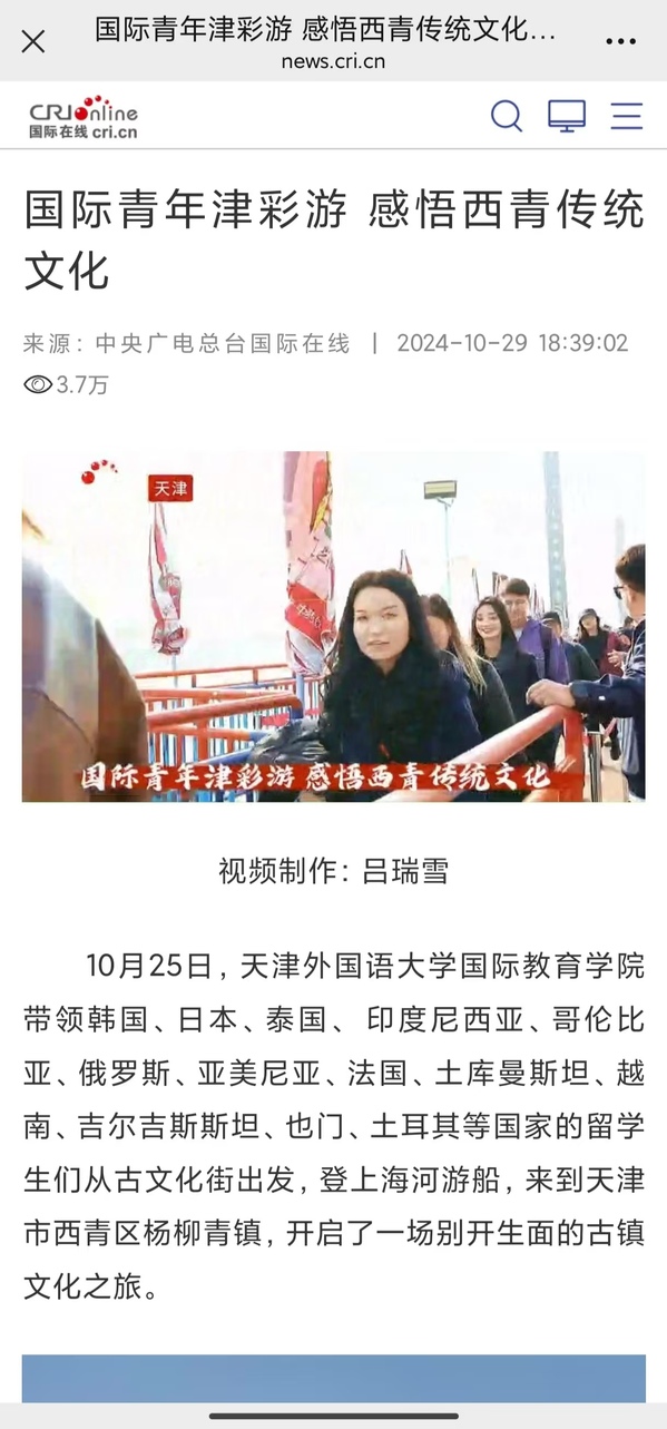 近日,中央广播电视总台国际在线与开云链接官网深度合作,策划报道天外留学生乐活津彩系列活动,助推中国文化国际传播,加强中外文化交流互鉴。
