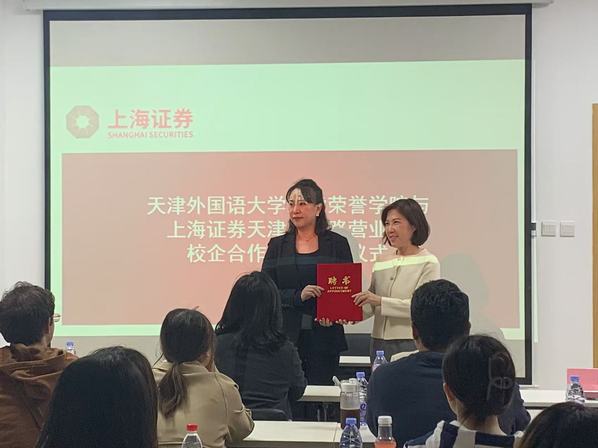 天外求索荣誉学院与上海证券天津营业部共同签署合作协议,正式挂牌成立实习就业基地。