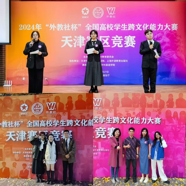 在2024年“外教社杯”全国高校学生跨文化能力大赛中,来自天津高校的43支队伍、129名选手同台竞技。天外3个团队从商务交际、文化生活和经典形象角度出发,结合高低语境、文化冰山、文化冲击、文化认同等跨文化理论内容对案例主题进行深刻阐述,并获二等奖1项,三等奖2项。