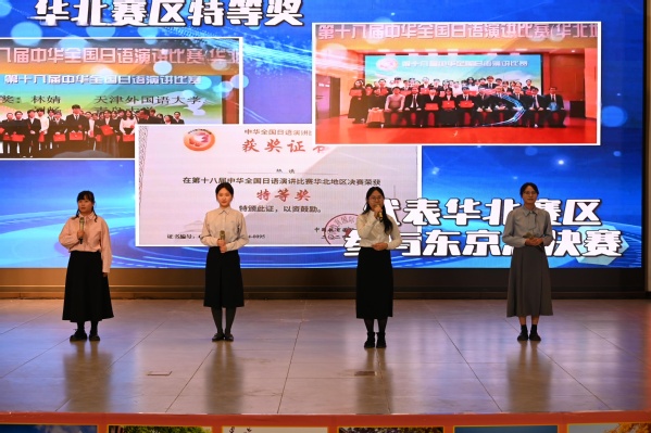在“执拼搏之笔 共描奋斗忘我的多彩画卷”篇章中,天外蓝的推动者林婧、常天悦、满都海、穆鹏霄展现了融通中外、语业双修的“新文科人才培养”成果。
