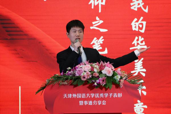 2015届优秀校友,英语专业荆涛以“永远感恩·永远奋进·永远相信”为主题,汇报了将对母校的爱和感激化作实际行动,在天津市至全国的教育舞台上摘金折桂的动人故事。