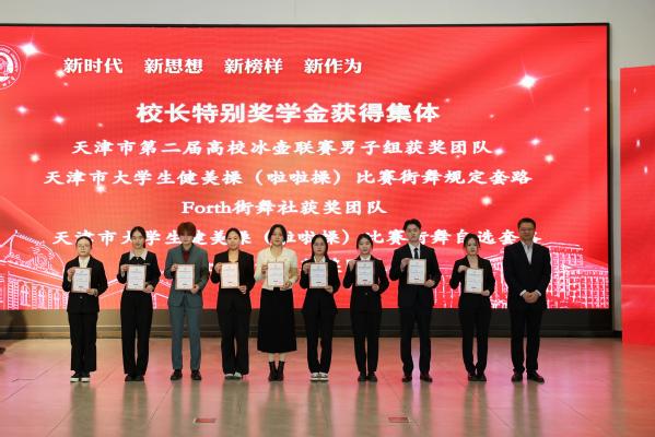 校领导为天津市人民政府奖学金获得者颁发荣誉证书