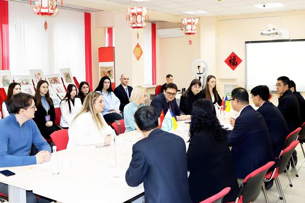 谢尔盖·索罗金陪同马升琨参观考察孔子学院并与师生代表交流座谈。座谈会由基辅国立语言大学中文教研室主任、孔子学院乌方院长尤利娅·柳比莫娃主持。孔子学院中方院长史亚军和远程中文教学项目教师代表以视频连线形式参加座谈会。史亚军向大使介绍了孔子学院的情况,对马升琨及使馆的大力支持表示感谢。马升琨对孔子学院的工作给予了高度评价,并对未来的发展寄予了殷切、美好的期望。