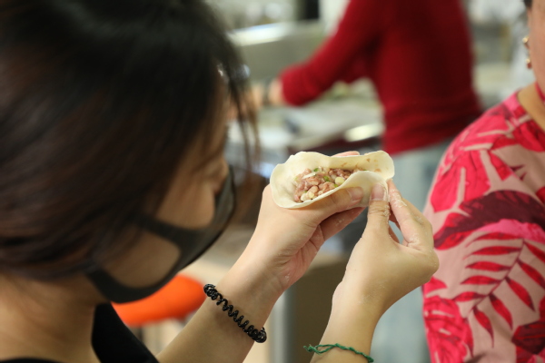 充满趣味的包饺子活动欢乐开启。大家围坐在一起,分工协作,有的揉面,有的擀皮,有的包馅,现场热闹非凡。形态各异的饺子在大家的巧手下诞生,每一个都饱含着欢乐与期待。当热气腾腾的饺子出锅,学生们迫不及待地品尝,纷纷竖起大拇指称赞味道鲜美,对自己动手包饺子的活动更是喜爱有加。
