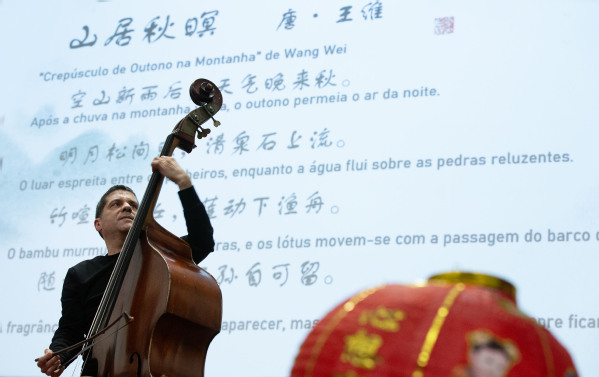 《朋友》由中葡学生联袂演唱,用音乐诠释两国深厚友谊,将现场气氛推向高潮。低音大提琴演奏家米格尔·莱利亚演绎的《山居秋暝》,悠扬婉转,将中国古典音乐的意境之美展现得淋漓尽致。