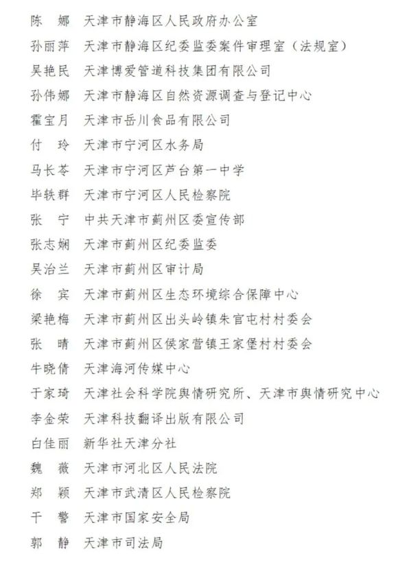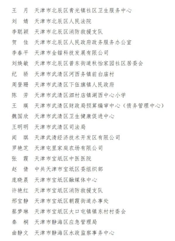 2023-2024年度天津市三八红旗手名单