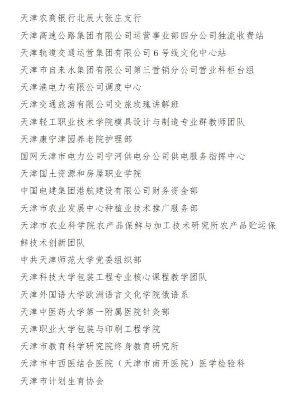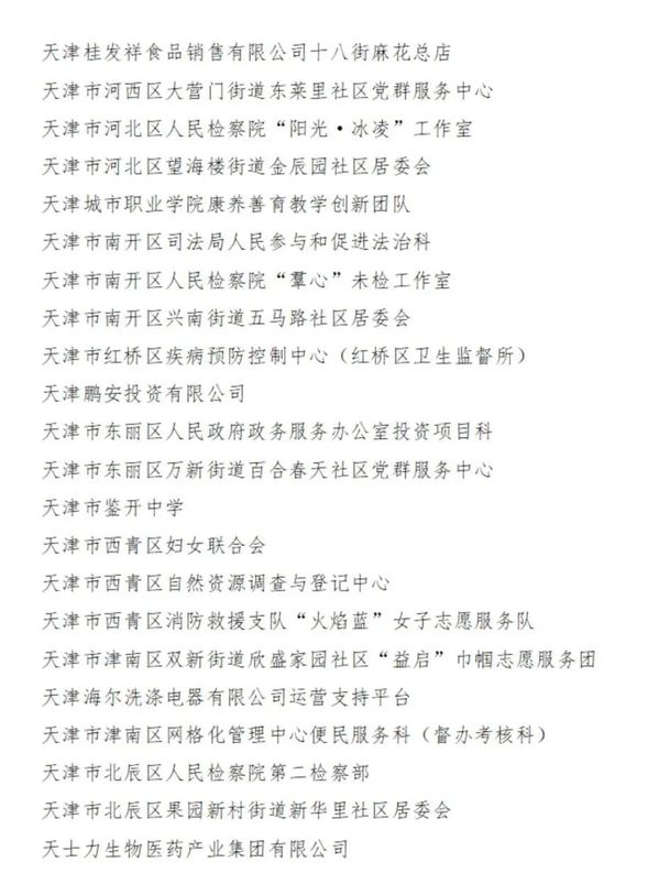 2023-2024年度天津市三八红旗集体名单