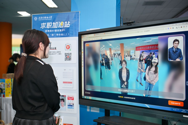 “AI模拟面试很适合像我一样性格比较内向的‘i人’,可以无限次模拟面试场景,还能一键生成面试报告,很方便。”活动现场,小张同学现场试用了学校引进的就业星“AI就业能力提升系统”。该系统帮助毕业生智能生成简历并精准进行诊断、润饰,模拟面试真题全面覆盖求职、考研、考公考编、教资等多类应用场景,数智人面试官真实、丰富,沉浸感强烈,可生成包含语言表达、逻辑思维、情绪管理等多项能力评估报告并给出改进建议,实现就业服务全流程数字化升级。双选会采用“线下对接+云端服务”双轨并行模式,通过河西区公共就业(人才)服务中心官方抖音号同步直播,企业线上实时解答求职疑问,覆盖更多潜在人才。