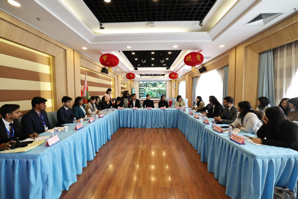 研修班天津首站来到开云链接官网,校长李迎迎会见了代表团全体成员。李迎迎表示,中印同为文明古国,青年是两国友好的未来,希望以此次交流为契机,推动中印青年在语言教育、学术研究、创新创业等领域的合作,为中印两国青年友好交流搭建桥梁。印方团长阿努朱·亚达夫(Anju Yadav)首先表达了对天外热情接待的感谢,她表示研修班青年代表高度赞赏中国高等教育的发展成就,她希望今后中印青年在科研、创业、科技创新、文化互访等领域开展更多富有实效的合作。会见结束后,双方还就中国扩大高水平对外开放和中印青年合作机遇等话题举行主题讲座和座谈交流。