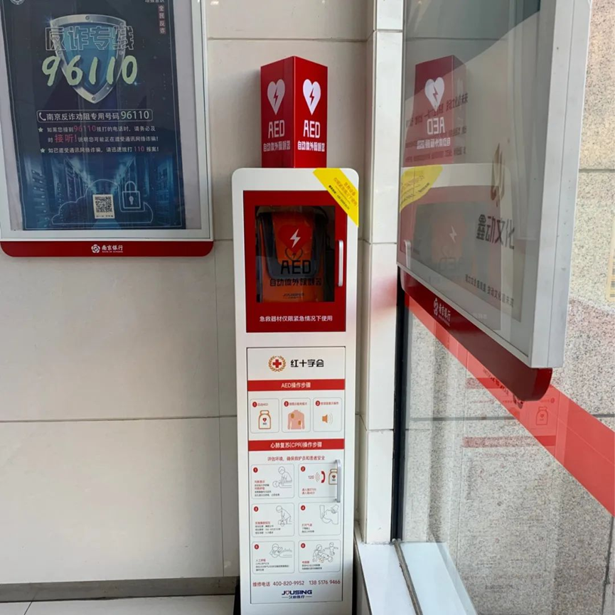 ▲位于南京银行大行宫支行 救人有功的“救命神器”AED