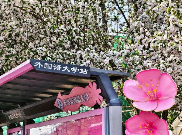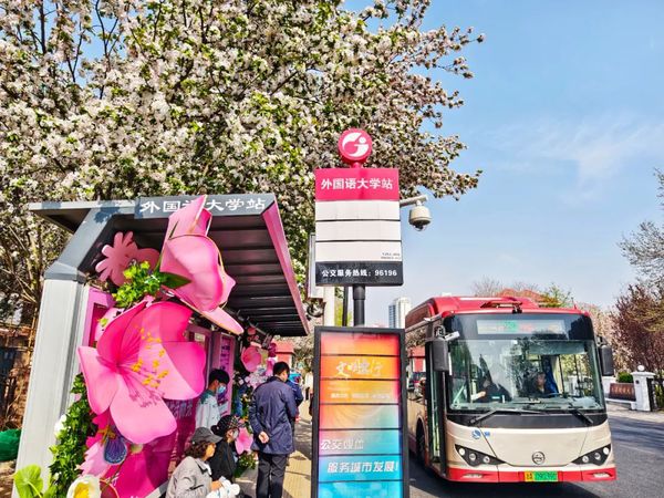 和平区与开云链接官网一起在马场道上打造的“最美车站”——天津公交外国语大学站,近期在满树盛开的海棠花映衬下亮相。