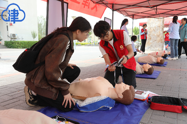 “应急救护是守护生命的‘第一道防线’,希望更多人加入生命守护者的行列中来。”天津工业大学校医院院长耿雪荞介绍,该校作为第二批全国学校急救教育试点学校,现已开设应急救护夏令营、校红十字会救护培训班、师生救护培训班等多课程、多类型专题培训,一大批师生经培训考核合格后取得红十字救护员证、心肺复苏(CPR+AED)培训证书等。