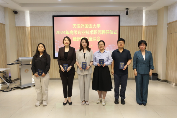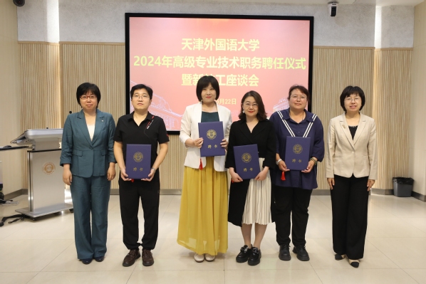 高级职称受聘人员代表周薇、曹立思表达了对学校大力培养和团队共同成长的感谢,表示将坚持传承创新,继续深耕教学科研一线,潜心教书育人;引进人才代表孙若圣、新入职教师代表潘晓彤、新入职辅导员代表袁洪策分享了现场观看《讲述》、聆听同事分享带来的力量和感动,表示将传承天外精神,发扬“无奋斗不天外”的作风,为加快建设国际知名特色鲜明的高水平外国语大学做出贡献!