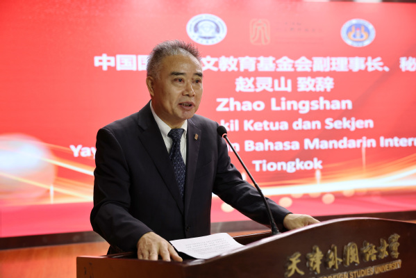 随后,赵灵山致辞,他回顾了中印尼建交75年来教育交流的密切往来,以及此前9所孔子学院和1所独立孔子课堂的建设成果。他表示,巴东国立大学孔子学院的成立,不仅是向中印尼建交75周年的献礼,还将为当地民众打开学习中文、了解中国的新窗口,推动两国高等教育合作迈向新台阶。