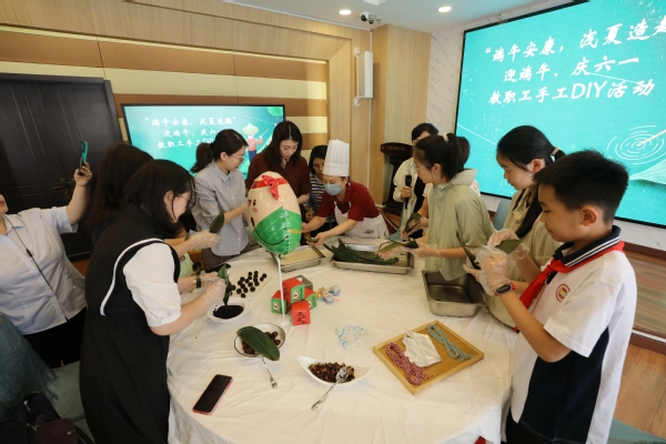 近日,为弘扬中国传统文化,增强教职工之间的互动交流,天外校工会举办“端午安康,浅夏造趣”迎端午、庆六一手工DIY活动,吸引了众多教职工携子女参与,现场充满欢声笑语。