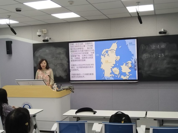 同期,通识教育学院的姜贵梅副教授带来“走进丹麦 —— 童话王国的浪漫与朴实”主题讲座。姜贵梅老师曾赴南丹麦大学美国文化中心访学,讲座从丹麦的历史脉络、社会福利体系、文化符号(如安徒生童话)切入,解读其“浪漫”与“朴实”并存的国民特质,引发师生对“文化传统与现代社会发展”的思考。