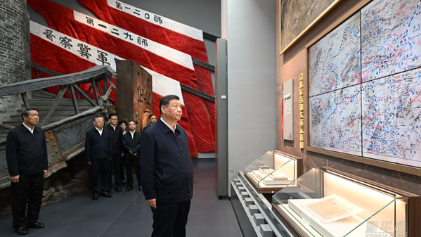 Xi Jinping złożył wieniec na pomniku męczenników Chińskiej Wojny Ludowej Oporu przeciwko Japońskiej Agresji w Yangquan, w prowincji Shanxi