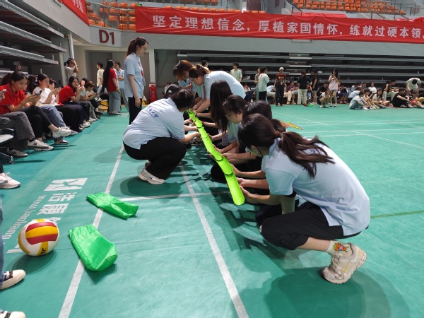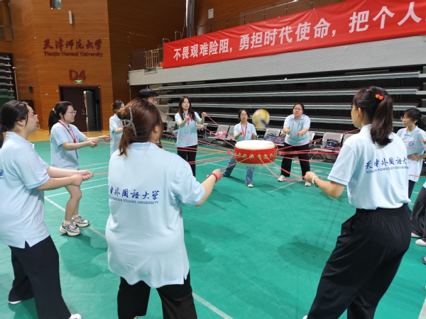 一场别开生面的素质拓展活动在天津师范大学体育馆火热展开。学员们放下书本,全身心投入。在专业教练的指导下,“能量传递”“齐心协力”“击鼓颠球”“合力建塔”等精心设计的素拓活动轮番开展。汗水浸湿了衣衫,但笑容洋溢在每个人的脸上。活动中,天外学子展现出聪慧与韧劲,彼此鼓励,密切协作,一次次突破自我、团结一致,又好又快地完成各项任务,为赴疆实习支教奠定了团队合作的基础。