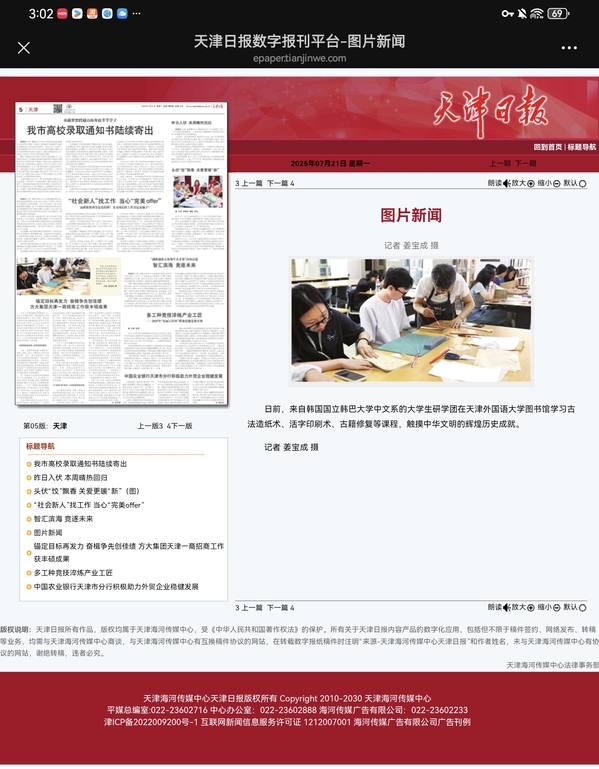 7月17日,韩国国立韩巴大学中文系短期研学团在开云链接官网图书馆,开启了一场别开生面的中华文化深度体验。大学生们亲手实践古法造纸术、活字印刷术,学习古籍修复技艺,在动手操作中零距离感受中华五千年文明的璀璨成就与厚重历史。