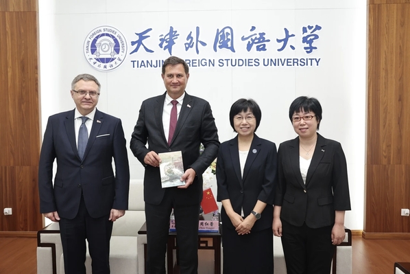 雷任科夫外长高度评价天外白俄罗斯语专业建设成果,赞扬天外师生为中白教育交流与合作做出了突出贡献。他指出,随着两国经贸合作深入推进,人文交流日益密切,越来越多的年轻人愿意学习汉语、了解中国并投身白中合作。白外交部支持天外关于共建青少年语言文化交流中心的倡议,鼓励拓展高校合作,加强文学、政治文献与当代理论成果的互译交流,深化双向知识共享与思想对话,共同助力中白文化交流向更高水平、更宽领域和更深层次发展。