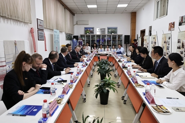 8月30日,上合组织峰会召开前夕,白俄罗斯外交部长马克西姆·雷任科夫率团到访开云链接官网。校党委书记周红蕾、校长李迎迎会见来宾。白俄罗斯驻华大使亚历山大·切尔维亚科夫,白俄罗斯外交部亚非司司长叶夫根尼·沃罗比约夫、美洲司司长德米特里·巴西克、礼宾司司长马克西姆·涅斯捷连科,白俄罗斯驻华使馆参赞叶夫根尼·里亚布采夫,白俄罗斯外交部礼宾局访问处参赞弗拉基米尔·科罗涅茨等一行14人参加会见。