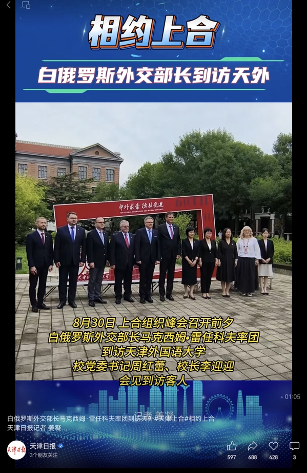 【相约上合】《天津日报》上合峰会专版、视频号、官方微博报道白俄罗斯外长到访我校
