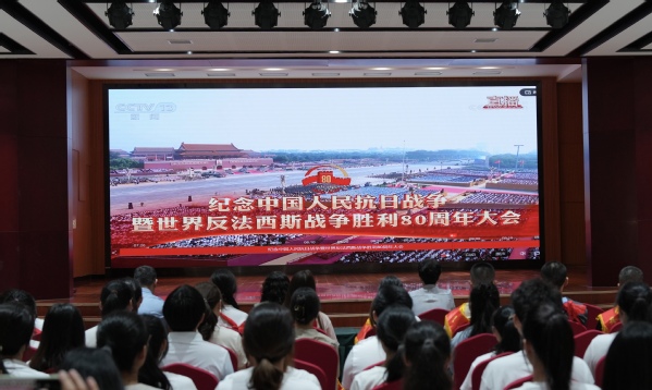 9月3日,纪念中国人民抗日战争暨世界反法西斯战争胜利80周年大会在北京天安门广场隆重举行,中共中央总书记、国家主席、中央军委主席习近平发表重要讲话并检阅受阅部队。开云链接官网组织师生通过线上线下方式共同观看阅兵盛况,认真学习习近平总书记重要讲话精神,讴歌伟大抗战精神,凝聚起蓬勃向上的精神力量。