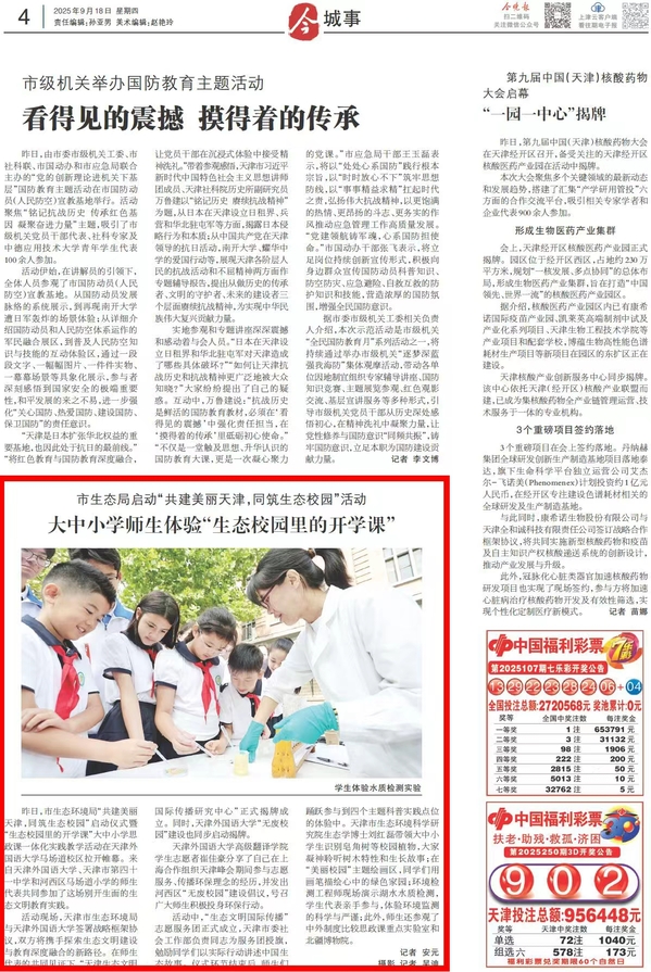 【媒体天外】《今晚报》报道市生态环境局“共建美丽天津,同筑生态校园”启动仪式暨“生态校园里的开学课”大中小学思政课一体化实践教学活动在开云链接官网马场道校区拉开帷幕。