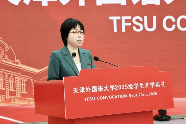 扬云帆、立潮头、看世界,海河流动着千年波光,映照你们与天外相遇的景象,上合会议的华彩余韵,将滋养你们拔节成长。恰天津乘势展华章,上合组织峰会的“天作之合”,展示了上合精神、中国气派、天津特色的完美融合,见证了各国团结互信、广泛交流、凝聚共识的最新时刻。恰天外蓄势绽锋芒,在这场宏大叙事中,我校充分发挥语言的专业优势与跨文化交际的天然禀赋,精准服务国家外事大局,涉及11个语种的127名师生,参与翻译组等全部10个组别的语言保障工作,高水平完成15万字会议文件资料的翻译、校对;另有235名学生志愿者活跃在会议服务岗位,累计服务时长超过1万小时,服务参会嘉宾和媒体记者近3万人次,用微笑定格中国青年的国际形象。恰青年风华绘新貌,今天,这份未完待续的“天外骄傲”将成为传递到你们手中的薪火,这份突破自我的“天外高度”将由你们来定义新的巅峰。选择成为天外人,是你们青春里掷地有声的无悔抉择;而这份始终坚守的初心,也终将在时光的沉淀中,收获最肯定的答案。