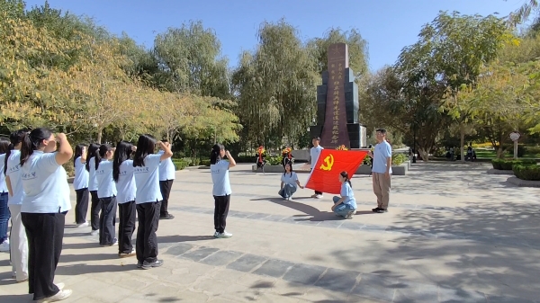 今年的国庆节意义非凡,是支教团在离津4000公里的的天山脚下度过的第一个节日。支教团在于田县参加了升旗仪式,心潮澎湃、热血沸腾。在全场高唱国歌声中,目光注视着冉冉升起的五星红旗,心中更加深了对祖国的热爱与祝福。支教团成员走进库尔班·吐鲁木纪念馆,观看了历史纪录片,在陈列的展台前驻足,聆听他当年的故事。在中国人民解放军独立骑兵师先遣连进藏纪念碑前,支教团成员们缅怀先烈,重温入党誓词,传承红色基因。在集体观看了电影《731》之后,支教团成员们纷纷表示,要铭记历史,勿忘国耻,发奋学习,教书育人,要讲好爱国故事,将促进民族大团结,铸牢中华民族共同体意识贯穿始终,为边疆建设贡献青春力量、天外力量!