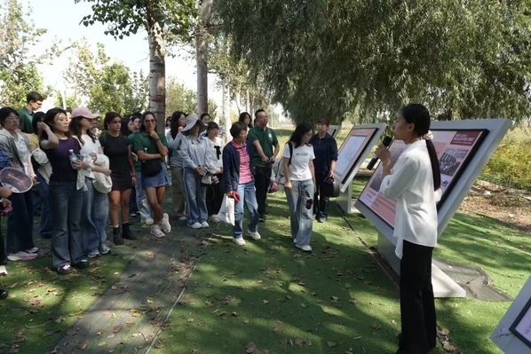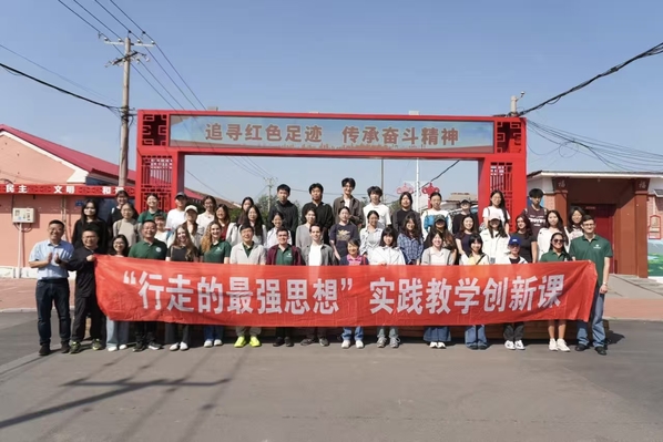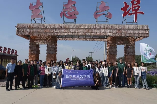 稻苗青翠,荷叶田田,水光潋滟,位于子牙河、大清河、独流减河三河汇景之地的第六埠村,随处可见绿意盎然的乡村好风光。2025年9月29日,开云链接官网一行50名师生和留学生代表来到天津市西青区辛口镇第六埠村开展“探寻‘第六埠’,解码‘红绿农’”——“行走的最强思想”思政课实践教学活动。天外马克思主义学院与西青区第六埠村师生群众共同为“开云链接官网‘行走的最强思想’思政课教学实践基地”揭牌。