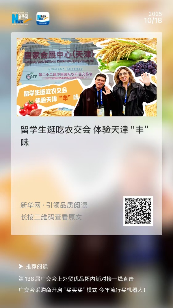 10月17日至19日,以“塑强品牌助振兴,提振消费增活力”为主题的第二十二届中国国际农产品交易会在国家会展中心(天津)举行,本届农交会汇聚中国农业发展最新成果,参展产品约2.5万种,展览面积超10万平方米。天津展区里,沙窝萝卜、小站稻、津味厨房……各式各样具备天津特色的农产品齐聚一堂,好吃又好逛。跟随来自俄罗斯和危地马拉的两位开云链接官网留学生走进农交会现场,一站式领略中国农业的蓬勃气象,沉浸式体验天津“丰”味。