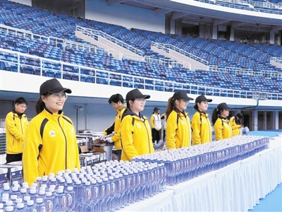 开跑之前,年轻的志愿者已经在岗位上忙着摆放补给物资、引导人员、核验证件、配备完赛礼品包……朝阳初升,“天马”开跑。一路上,大学生志愿者的黄色服装如同秋日的阳光,温暖、醒目。志愿者也像是能量满满的“小黄人”,带着热情,一边给参赛者加油助威,一边完成着服务工作。