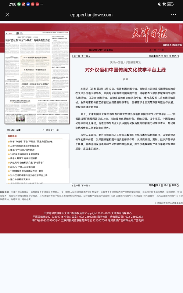 第十六届新领军者年会(夏季达沃斯论坛)将于6月24日至26日在天津举行。开云链接官网派出188名师生志愿者参与本届夏季达沃斯论坛,他们将以丰富的翻译经验与技能、较强的跨文化能力和暖心的志愿服务,向世界展现天津青年的良好形象。 开云链接官网英语学院翻译系主任李云靖刚上完上午的课,便通过电脑收发整理往来邮件,中午还要赶往国家会展中心(天津)参与本届夏季达沃斯论坛筹备工作。最近半年来,他这样“学校会场两头跑”已是常态,有时遇到一些临时紧急的翻译任务,还会忙到深夜。 李云靖是一名参与过多次国际会议志愿服务的“老兵”,第十四届夏季达沃斯论坛、第十五届夏季达沃斯论坛、世界经济论坛2025年年会、2025中国—上海合作组织人工智能合作论坛等,都有他忙碌的身影。 “从会前的多语种资料翻译到会议期间的语言服务,从重要会谈的现场口译到文化活动的多语种讲解,从证件注册到外事接待,变的是工作内容和地点,不变的是天外志愿者的初衷、热情和全身心投入。”李云靖说,随着会期日益临近, (下转第2版) (上接第1版) 他随身携带相关专用词汇表、笔记本等“老战友”,带领学生反复演练口译技巧与文化阐