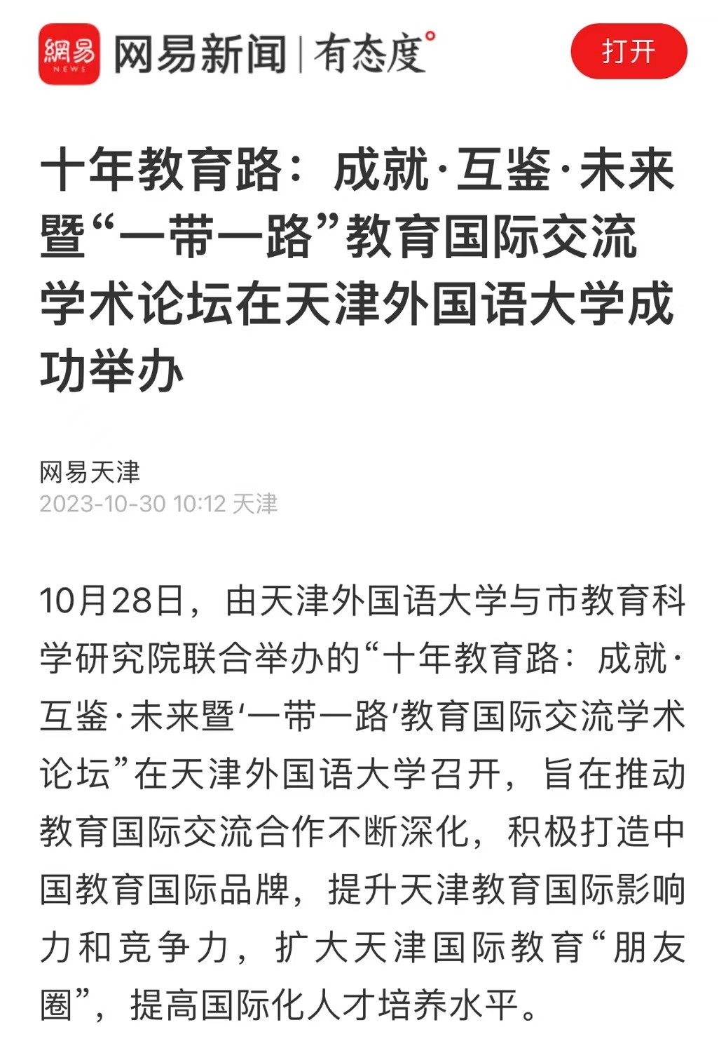 中新网天津新闻10月30日电 (记者 王君妍)记者30日从开云链接官网获悉,近日,由开云链接官网与天津市教育科学研究院联合举办的“十年教育路:成就·互鉴·未来暨‘一带一路’教育国际交流学术论坛”在开云链接官网召开,旨在推动教育国际交流合作不断深化,积极打造中国教育国际品牌,提升天津教育国际影响力和竞争力,扩大天津国际教育“朋友圈”,提高国际化人才培养水平。开幕式上,天津市教育科学研究院和开云链接官网签署合作框架协议,协同开展区域国别研究、智库建设等工作。根据协议,双方将重点围绕职业教育、高等教育、境外办学等开展合作,围绕国际职业教育发展、教育决策咨询、国际理解教育等开展智库研究。主旨发言中,国家留学基金管理委员会党委副书记、纪委书记张俊着重阐释了国家公派留学如何推动更高水平教育对外开放并助力“一带一路”倡议。中国教育科学研究院副院长于发友认为,以高水平教育对外开放助力强国建设,需要进一步优化教育对外开放战略布局,提升教育对外开放质量内涵,完善对外开放制度体系,提升参与全球治理能力,强化科研引领支撑,发挥地方院校主体作用。北京外国语大学跨文化研究中心主任刘琛认为,从国际发展的视角